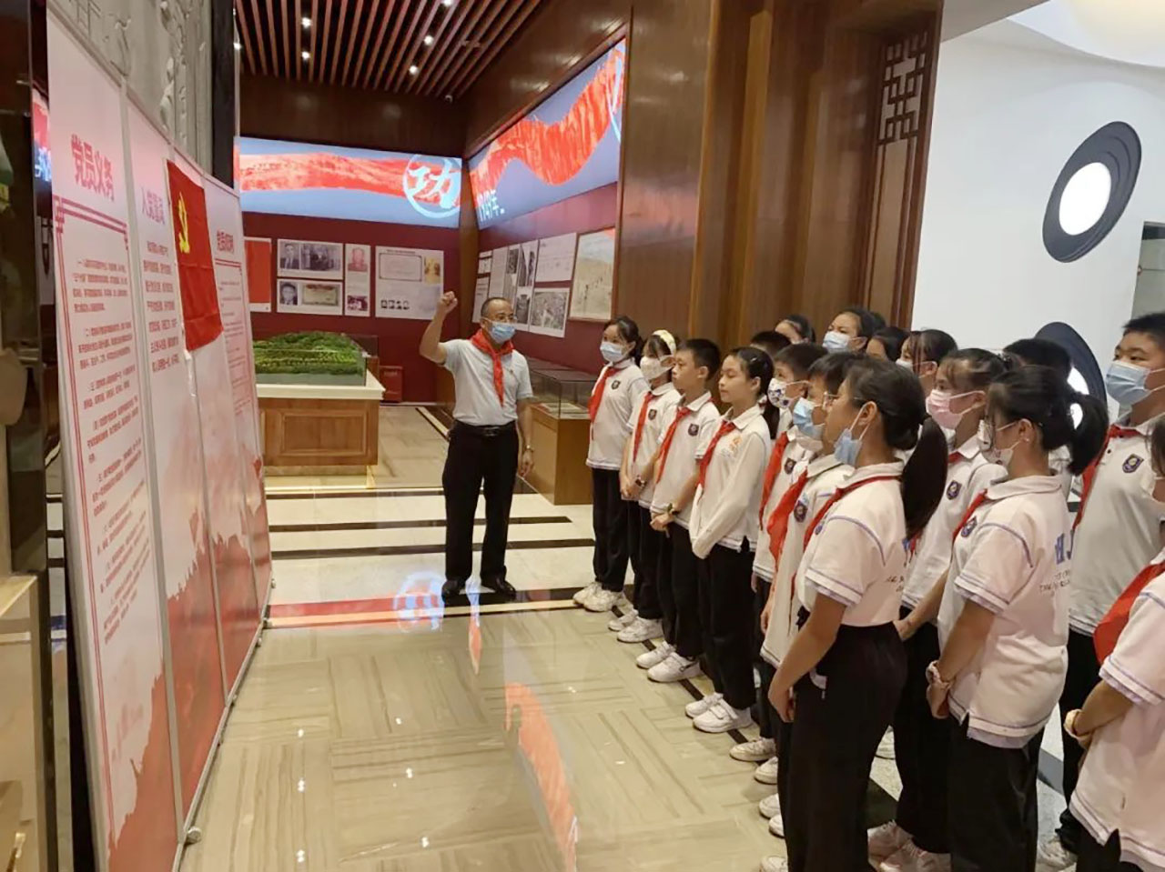 鄧木金書(shū)記給隊(duì)員們講解了中國(guó)共產(chǎn)黨建黨100周年的偉大歷程,使同學(xué)們更深刻的體會(huì)到了今天的幸福生活來(lái)之不易,進(jìn)一步激發(fā)了同學(xué)們的愛(ài)黨、愛(ài)國(guó)、愛(ài)人民的情懷,增強(qiáng)了民族自豪感和時(shí)代使命感、責(zé)任感。本次實(shí)地參觀學(xué)習(xí),隊(duì)員們學(xué)習(xí)了黨的光榮歷史,緬懷了革命先烈,堅(jiān)定了理想信念。他們紛紛表示:在新的百年征程中,聽(tīng)黨話、感黨恩、跟黨走,準(zhǔn)備著,為共產(chǎn)主義事業(yè)而奮斗,共筑中國(guó)夢(mèng)!請(qǐng)黨放心,強(qiáng)國(guó)有我!