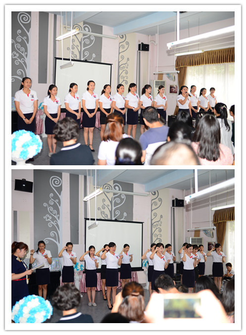 “我是遠(yuǎn)恒佳溪山幼兒園的老師...用我的善良...用我的誠實(shí)...用我的美好言行...以我高尚的人格...使每一個(gè)孩子的人生因我的努力而更加幸福!”