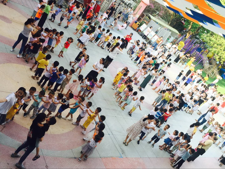 為提高幼兒英語口語能力,創(chuàng)造濃厚英語口語氛圍,在集團(tuán)學(xué)前教育中心的組織下,英語老師把口語融入到律動和兒歌游戲中,讓幼兒進(jìn)行最有效地學(xué)習(xí)。同時為了提升集團(tuán)幼兒園晨間英語的組織質(zhì)量,實(shí)現(xiàn)資源的有效整合、經(jīng)驗的共享,9月、10月份公明第二幼兒園進(jìn)行晨間英語10分鐘游戲(律動、歌唱、兒歌)動作編排、隊形的系列教研活動。
