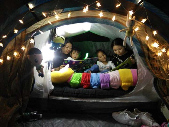 聽,一個個帳篷內(nèi)時不時傳來了一陣陣的閱讀聲、嬉笑聲、裝叫聲、甚至細無聲。