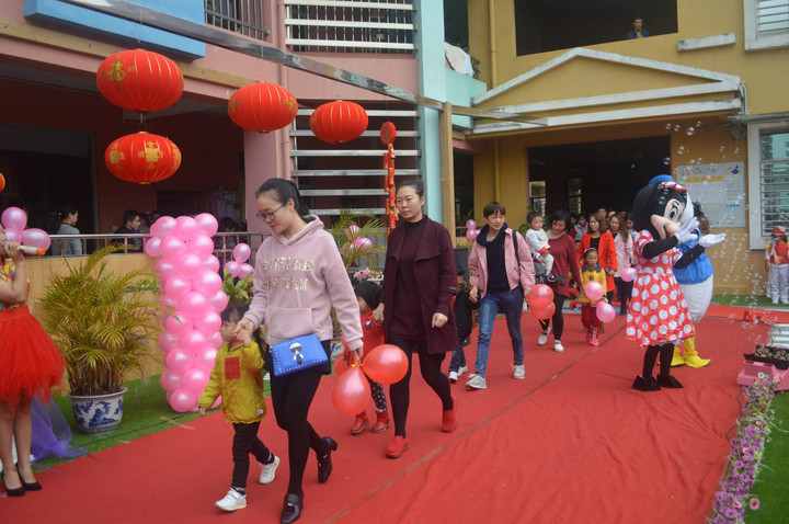 7:30開學典禮就正式開始啦!在老師們、卡通人物的迎接下,家長與寶寶們伴隨著歡快的音樂,快樂的歡呼起來;用互動的方式開啟了一系列的環(huán)節(jié):