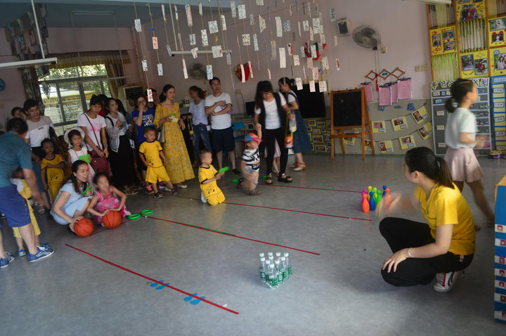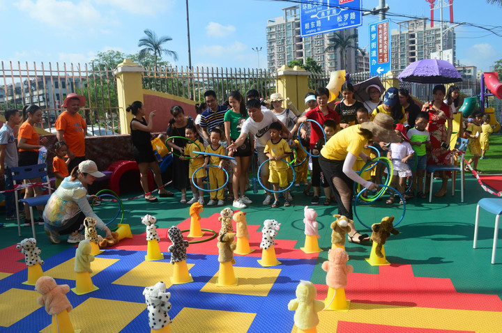 此次“親子游園活動”豐富多彩、熱鬧非凡,家長以串班的形式帶領(lǐng)孩子們進行了有趣的游園活動,幼兒園內(nèi)到處可見孩子們開心的笑臉、活潑的身影。此次游園活動融知識性、科學(xué)性、趣味性為一體,包括了“足球”、“高爾夫”、“小貓釣魚”、“ 母雞下蛋”、“兩小無猜”、“幸運大轉(zhuǎn)盤”、“紙上彈珠”、“扔骰子”、“吹蠟燭”等形式多樣的22個游戲?;顒悠陂g,小朋友們各自拿著活動所得的獎品,充分享受著節(jié)日的快樂與幸福!豐富的游園活動,讓父母和寶貝們在比賽中感受活動的激烈,在合作中感受活動的快樂,在頒獎中感受活動的榮耀。一張張陽光燦爛的笑臉,一陣陣清脆爽朗的笑聲,歡樂就在我們身邊。