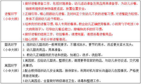 1.做好進(jìn)餐準(zhǔn)備工作,包括環(huán)境準(zhǔn)備、幼兒活動(dòng)準(zhǔn)備及用品用具準(zhǔn)備等,為幼兒分餐,確保所提供的食物溫度適宜,放置位置安全;