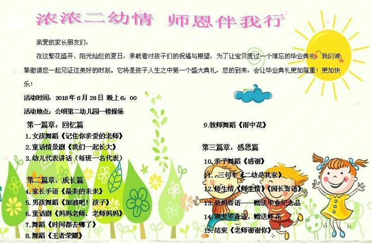 當(dāng)前位置:學(xué)前教育>新聞動(dòng)態(tài)> “濃濃二幼情,師恩伴我行” 公明二幼大班畢業(yè)典禮邀請(qǐng)函