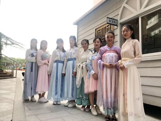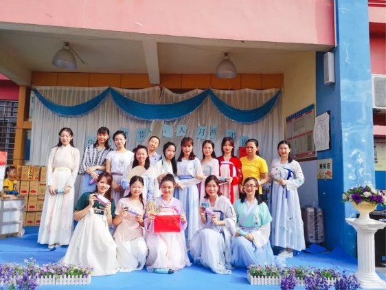 今日碧水園老師們身穿漢族霓裳,共同描繪漢唐盛世的優(yōu)美畫卷。