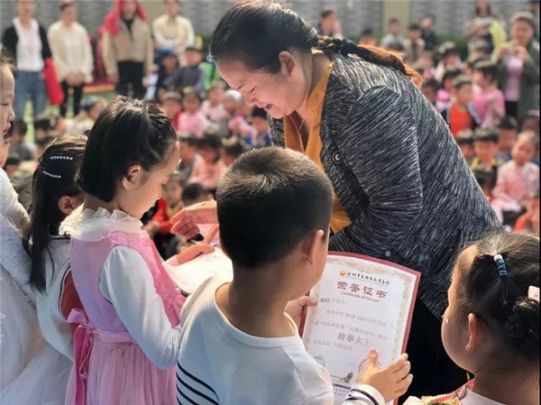 通過激烈的比賽,小朋友們都收獲了優(yōu)秀證書,園長媽媽為小朋友們頒發(fā)“故事大王”獎狀。