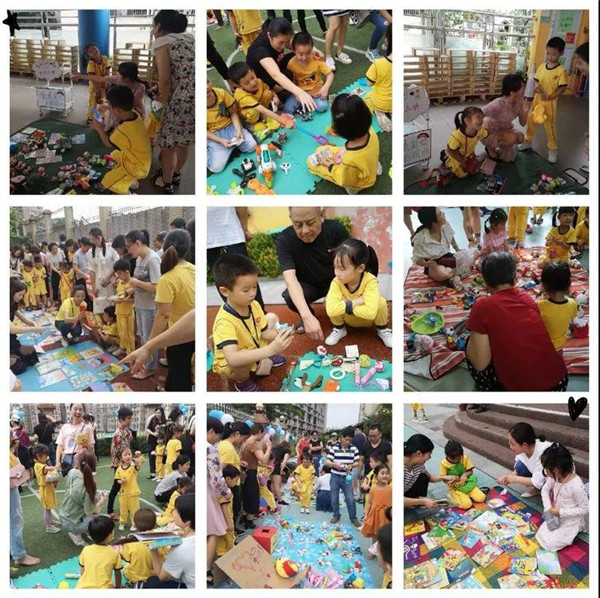 市場上的商品琳瑯滿目,小朋友在家長的陪同下擺出了各式各樣的小商鋪,出售自己的舊玩具、圖書以及手工作品等,非常感謝我們的家長義工們早早的來到幼兒園協(xié)助老師們布置市場,辛苦啦!