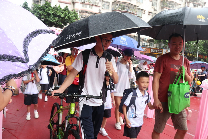 9月2日的清晨,雖然天空下著小雨,卻擋不住行政干部、值日師生迎接同學(xué)們到校的熱情。接送的家長(zhǎng)、上學(xué)的同學(xué)們臉上個(gè)個(gè)洋溢著燦爛的笑容,新學(xué)期校園生活也就由此拉開帷幕。