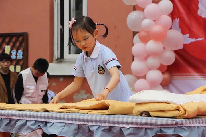 勞動技能展示:大班疊被子、折衣服