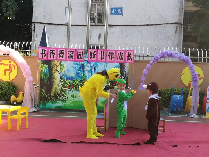 2016年11月28日,在遠(yuǎn)恒佳花園幼兒園大操場,中三班的小朋友和他們的爸爸媽媽為大家獻(xiàn)上了親子童話劇《弗洛格找寶藏》。弗洛格和小熊去挖寶藏,他們先挖了個(gè)洞,洞越挖越深,結(jié)果被困在里面了。小熊急哭了,弗洛格想出了一個(gè)唱歌的辦法來安慰小熊。直到第二天,鴨子出來散步時(shí),才發(fā)現(xiàn)了他們。最后鴨子去找老鼠幫忙,老鼠很聰明,搬來了一架梯子,救出了弗洛格和小熊。