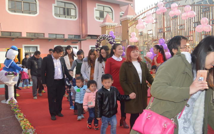 新加入的小朋友在爸爸媽媽的陪同下,閃亮登場。瞧!迎面走來美麗公主,帥氣的王子,臉上洋溢著幸福的笑容。在一旁的哥哥姐姐們就在歡迎著新寶貝,這一刻,好像在空中都聞到了甜甜的味道!