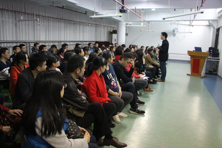 家長(zhǎng)們?cè)谡J(rèn)真聽(tīng)講座