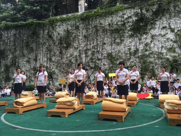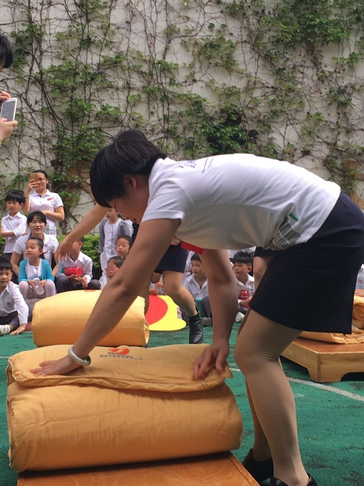 在主持人一聲號(hào)令下,保育老師們迅速地開(kāi)始疊被子。從他們整齊有序的動(dòng)作可以看出平時(shí)老師們也是如此熟練地為咱寶寶們收拾打理的。