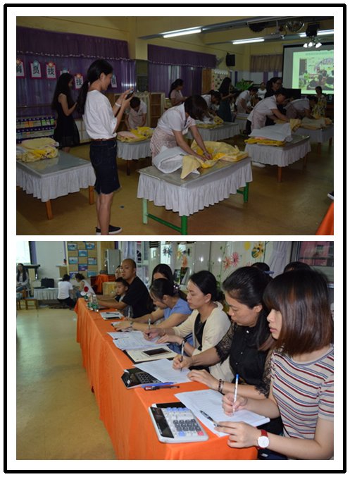 為促進(jìn)我園保育老師基本專業(yè)技能的發(fā)展,促進(jìn)保教結(jié)合,建設(shè)一支高素質(zhì)高質(zhì)量的保育員隊(duì)伍,不斷提高我園保育工作、管理水平和保育質(zhì)量;我園在5月份對全園保育老師進(jìn)行技能技巧考核,考核分筆試和實(shí)操。實(shí)操考核內(nèi)容為“1.疊被子2.擦桌子”。本次考核疊被子,擦桌子這些內(nèi)務(wù),主要目的是要規(guī)范保育員日常操作流程以及提高保育員工作的效率,讓保育員的內(nèi)務(wù)工作能力更上一層樓。