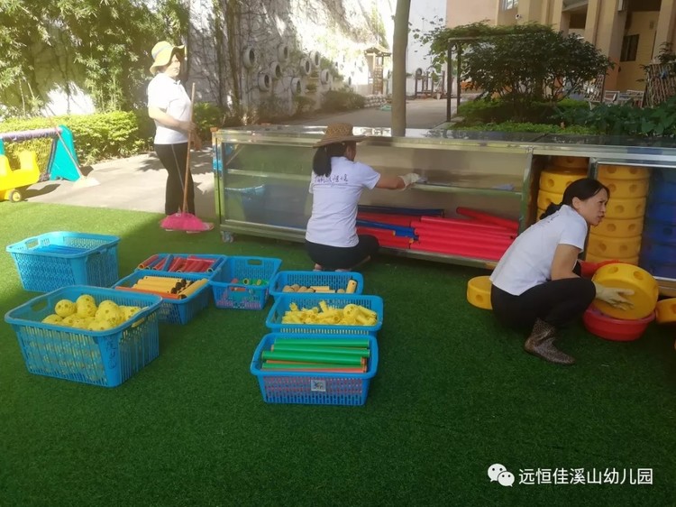 園內(nèi)各大衛(wèi)生死角、大型玩具等進(jìn)行清理