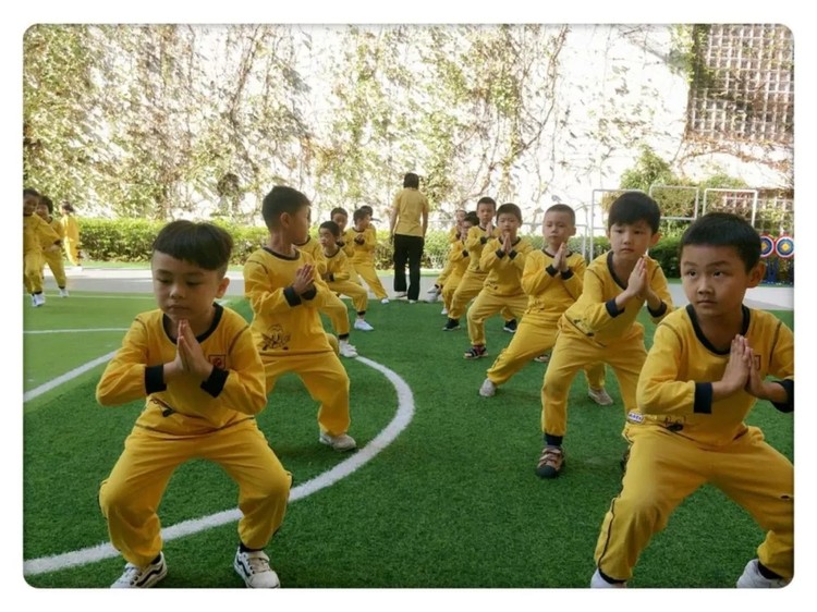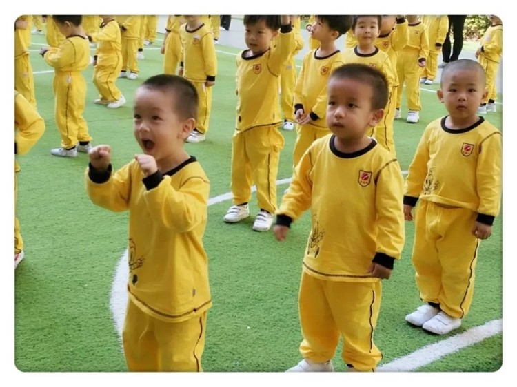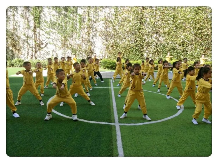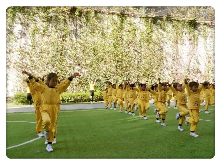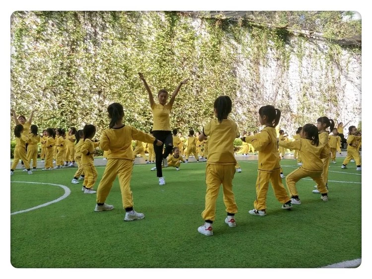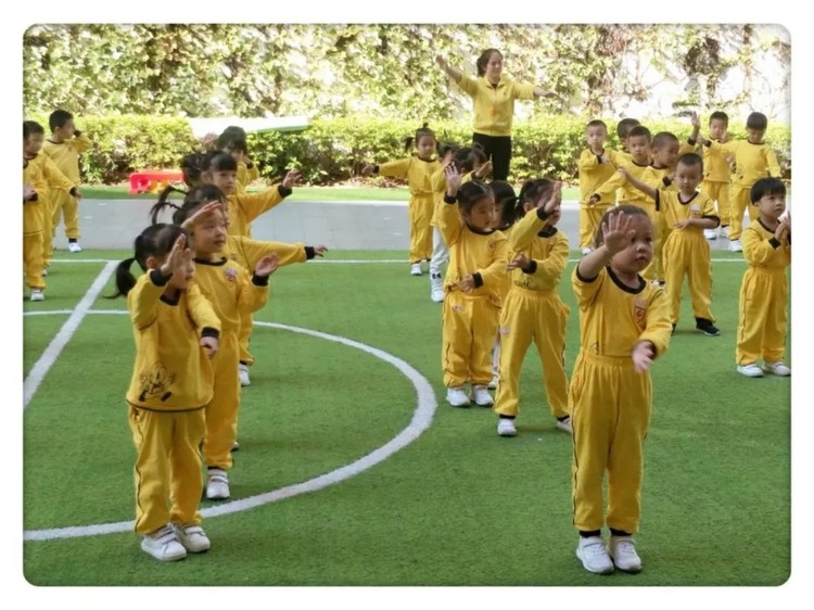 大班武術操《少年當自強》,武術是中華傳統(tǒng)文化瑰寶,武術招式特別受大班幼兒所喜愛。操節(jié)展示中,干凈利落的動作編排、場地方圓變化、激昂的音樂,使大班幼兒的肌肉得到鍛煉,同時激發(fā)幼兒熱愛祖國的情感。