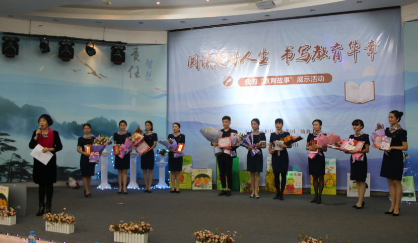 集團(tuán)屬下10所幼兒園(深圳8所、重慶2所)262名教師參加了前期各園組織的“我的教育故事”海選,最后推選出13位教師登臺(tái)亮相。13個(gè)故事鮮活真實(shí),13個(gè)故事凝練厚重,13個(gè)故事美好溫暖。她們有的講述對(duì)“個(gè)性孩子”的接納和關(guān)愛,有的抒發(fā)對(duì)幼兒教育的理解和熱愛,有的分享美好教育的心路歷程……故事的背后濃縮了為人師者的付出與收獲、歷練與成長(zhǎng),特別是來自遠(yuǎn)恒佳幼兒園的10號(hào)選手夏博,作為唯一一名參展男教師,他真實(shí)的故事、動(dòng)人的情節(jié),加上“家人”助陣,贏得陣陣喝彩。他從大學(xué)選擇學(xué)前教育專業(yè)到遇見愛情,畢業(yè)后出于對(duì)“幼兒教育夢(mèng)”的不懈追逐,1對(duì)戀人一起走進(jìn)了遠(yuǎn)恒佳幼兒園,緣夢(mèng)圓夢(mèng)……唯美的師幼情景表演《書香點(diǎn)亮世界》、詩朗誦《人生最美是讀書》將活動(dòng)推向了高潮。