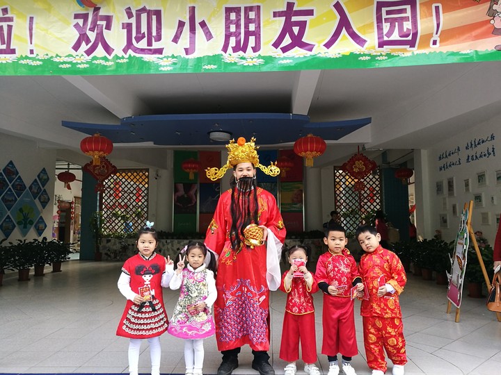 園長媽媽帶著老師們也早早地在幼兒園門口熱情地歡迎寶貝們回園;保健醫(yī)生為孩子們細心地做好晨間檢查;“Welcome back to kindergarten”英語老師也在用英語歡迎孩子們回園;最讓孩子們欣喜的是財神爺帶著金童玉女在校門口迎接大家,并送上裝有糖果的利是紅包,給新年第一天回園的孩子們帶來了一天美好的心情。