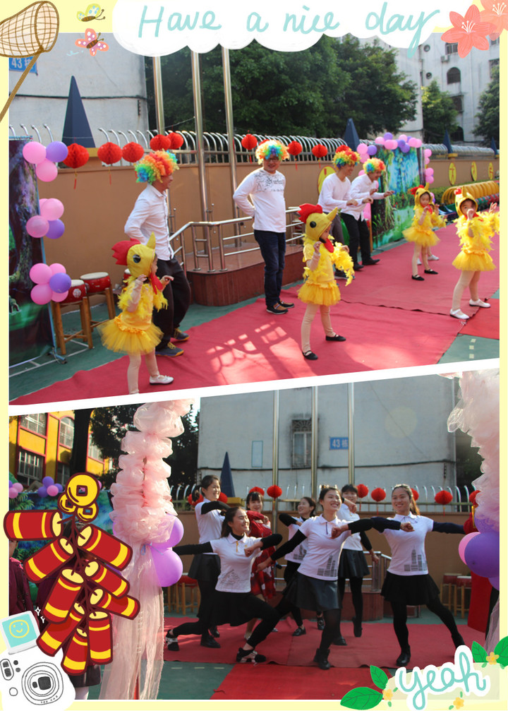 緊接著,園長媽媽也在開學典禮上為小朋友們送來親切的祝福,愿每一位小朋友在新學期里茁壯成長、健康快樂。最后的壓軸節(jié)目是由爸爸隊和舞蹈班的孩子們帶來的舞蹈《金雞報曉》,金雞一唱千門曉,和聲四海萬戶春,大美花園夢、金雞報春來。
