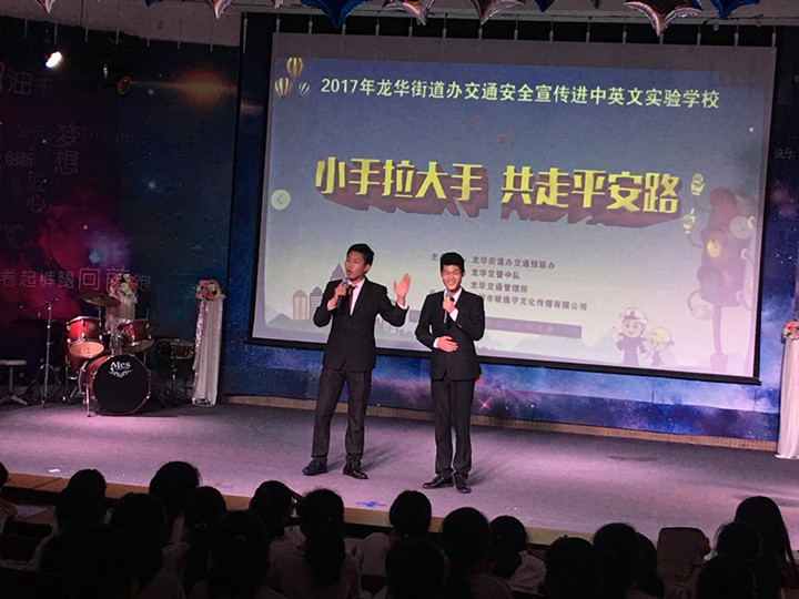 深圳市駿逸宇文化傳播有限公司通過小蘋果版的交通歌曲、小品、魔術、相聲、雙簧等豐富多彩的節(jié)目宣傳了交通安全知識,并在現(xiàn)場向同學們發(fā)放了交通安全宣傳手冊,提醒廣大同學時刻注意交通安全,遵守交通信號燈,不在馬路上追逐打鬧,不乘坐超員車輛,杜絕交通陋習,并倡導各位同學做一名文明的交通參與者,讓同學們從小樹立遵章守法、安全出行的理念?;顒蝇F(xiàn)場還通過有獎問答來鞏固同學們對交通安全知識的掌握,氛圍熱烈而有序。