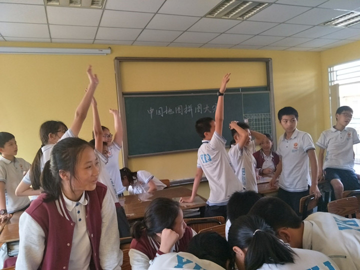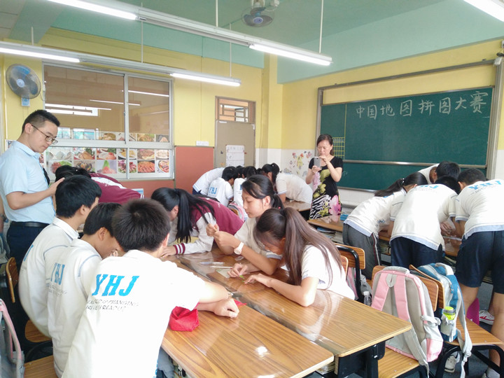 為提高學生學習歷史、地理的興趣,增強歷史、地理綜合素養(yǎng),形成學生愿意學、開心學、積極學的學習氛圍,加深學生對歷史知識的了解及對中國地   理概念的運用。初中部大文科組5月31號下午第十節(jié)課在七、八年級教室舉辦了中國地圖拼圖大賽。