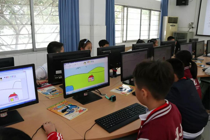 第三個(gè)環(huán)節(jié)開(kāi)展的是“創(chuàng)客教育名師送課進(jìn)校園”活動(dòng),由清湖小學(xué)蕭雪琴老師為龍華中英文實(shí)驗(yàn)學(xué)校四D班的同學(xué)們帶來(lái)了一場(chǎng)別開(kāi)生面的電腦繪畫(huà)課。蕭老師親切的課堂語(yǔ)言深受同學(xué)們喜愛(ài),新穎的教學(xué)內(nèi)容激發(fā)了同學(xué)們的熱情。