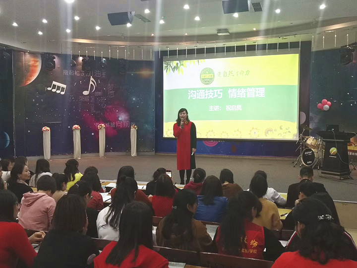 承諾儀式結(jié)束后,學(xué)?!皩W(xué)生發(fā)展中心”祝啟鳳主任還結(jié)合學(xué)生成長(zhǎng)過(guò)程中出現(xiàn)的問(wèn)題與困惑,以及家庭教育與學(xué)校相結(jié)合過(guò)程中出現(xiàn)的具體案例,對(duì)老師們開展了《教師情緒管理與溝通技巧》培訓(xùn)。在培訓(xùn)過(guò)程中,老師們認(rèn)真傾聽,積極思考,謙虛求問(wèn),不僅以換位思考的角度,理解了孩子和家長(zhǎng)們的心聲,同時(shí)也學(xué)習(xí)了如何從“積極教育”和“積極心理”的層面及時(shí)進(jìn)行自我情緒調(diào)節(jié);如何對(duì)學(xué)生進(jìn)行正面教育和積極心理疏導(dǎo)的知識(shí)和技巧。