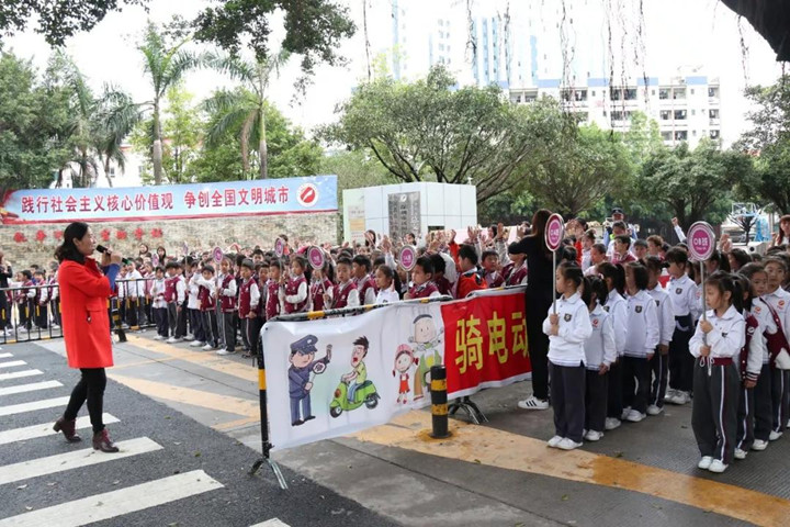一年級各班同學(xué)在班主任的帶領(lǐng)下開展交通安全活動