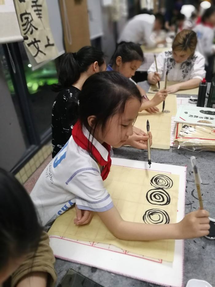 書法親子社團(tuán)是由小學(xué)部家委陳文英女士組織開(kāi)展的,書法指導(dǎo)老師由3E班張文榕爸爸安排。鄒老師從毛筆握筆姿勢(shì)、運(yùn)筆方法、間架結(jié)構(gòu)等基礎(chǔ)方面,不厭其煩地指導(dǎo)訓(xùn)練,逐漸深入教學(xué)。學(xué)員認(rèn)真練習(xí),場(chǎng)面文化氣息濃厚,深得社團(tuán)成員會(huì)喜愛(ài)。
