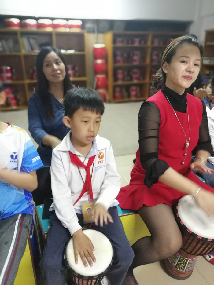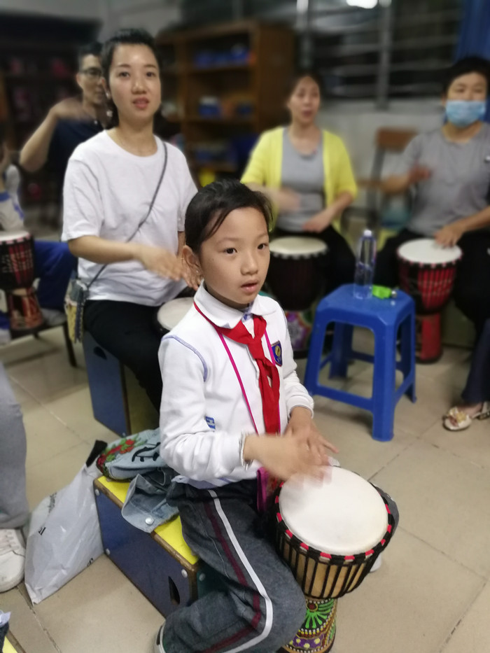 非洲鼓社團(tuán)由學(xué)校家委劉輝秘書長(zhǎng)負(fù)責(zé),非洲鼓指導(dǎo)老師由1A班吳祈龍媽媽安排。李老師是鼓類專業(yè)指導(dǎo)老師,將這些年齡差異大、專業(yè)基礎(chǔ)不一的大小學(xué)員組織好、訓(xùn)練好,李老師可是費(fèi)了不少的腦筋。從非洲鼓來(lái)源、樂(lè)理知識(shí)、基礎(chǔ)訓(xùn)練、技藝把握、節(jié)目編排等入手,用通俗易懂的方法、較短的時(shí)間,將親子非洲鼓社團(tuán)的成員們,很快從一無(wú)所知訓(xùn)練到小有成就。相信,在藝術(shù)節(jié)舞臺(tái)上,非洲鼓社團(tuán)會(huì)給師生、家長(zhǎng)帶來(lái)震撼的視覺(jué)感受。