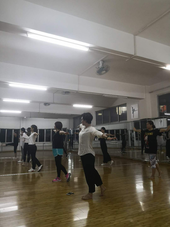 舞蹈社團(tuán)由小學(xué)部家委楊莉莎副主任負(fù)責(zé),舞蹈教練由學(xué)校彭老師擔(dān)任。這一社團(tuán)是清一色的媽媽社員組成。彭老師對(duì)學(xué)員的訓(xùn)前準(zhǔn)備、基本功訓(xùn)練、組合動(dòng)作等,均從專業(yè)的角度嚴(yán)格要求,為后期的練習(xí)和展示打下堅(jiān)實(shí)的基礎(chǔ)。