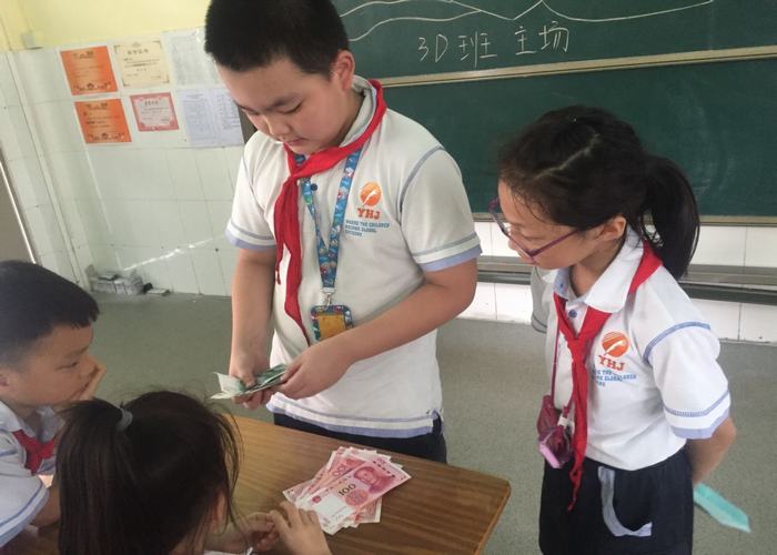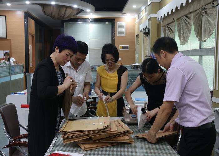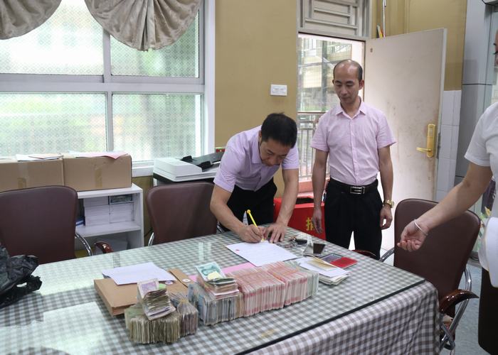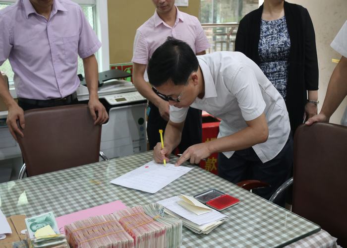 行政代表、家長(zhǎng)代表和財(cái)務(wù)人員清點(diǎn)善款