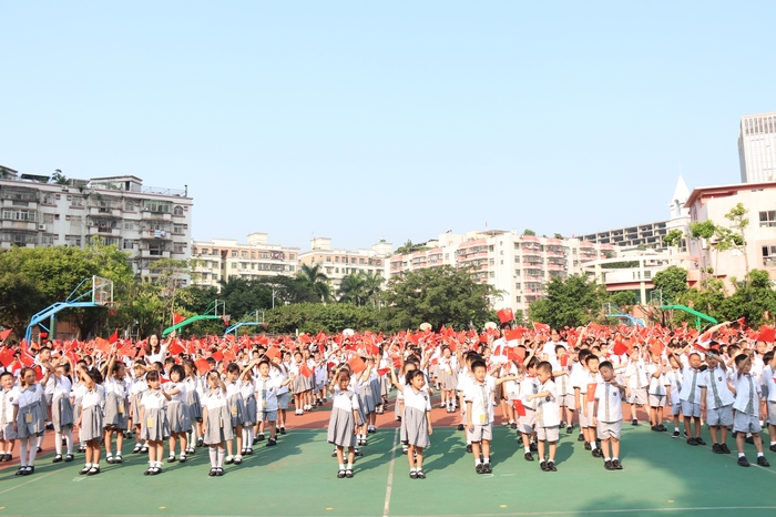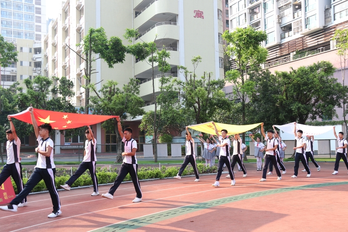 2019年9月30日,深圳市龍華中英文實驗學(xué)校舉行了題為“我與祖國共奮進”的主題升旗儀式,全體師生員工在運動場上莊重參加儀式,齊唱《我和我的祖國》,共同隆重慶祝中華人民共和國成立70周年,奏響禮贊新中國、奮進新時代的主旋律,深入開展愛國主義教育。