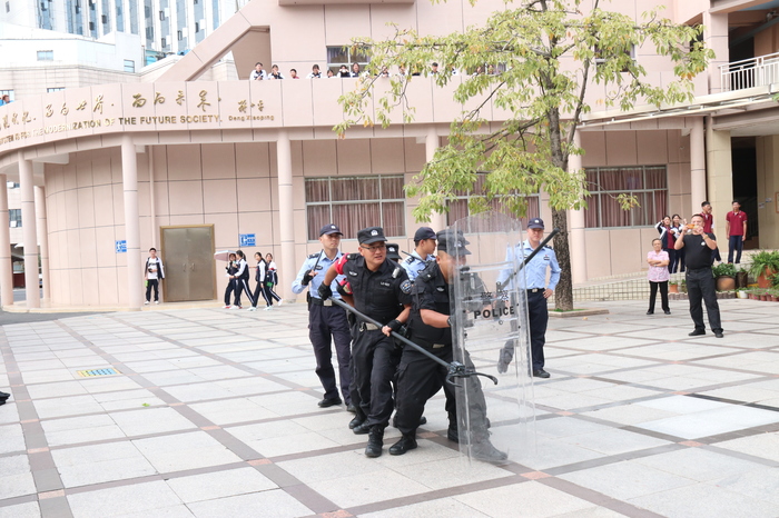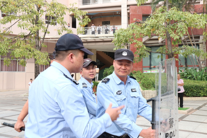 為進(jìn)一步強(qiáng)化我校師生的反恐防暴意識(shí),提高學(xué)校安保人員的應(yīng)對(duì)突發(fā)事件的能力,2019年10月30日下午,深圳市龍華區(qū)龍城派出所防恐沖鋒隊(duì)來我校開展了反鞏防暴演練活動(dòng),同時(shí)對(duì)我校安保隊(duì)伍進(jìn)行了專業(yè)技能培訓(xùn)及實(shí)戰(zhàn)演習(xí)。