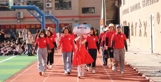 隨著運(yùn)動(dòng)員入場完畢,伴著悠揚(yáng)的音樂,五年級(jí)學(xué)生手持彩花歡快入場,大型歌伴舞《歌唱共產(chǎn)黨》、《心愿》為全體師生獻(xiàn)上了一場美侖美奐的視聽盛宴,歌聲悠揚(yáng)、場面壯觀,參演師生飽含深情表達(dá)對(duì)祖國的熱愛之情?;犹K、激情拉丁舞以及啦啦操特色表演輪番登場,跳繩中的高難動(dòng)作、拉丁舞的激情奔放、啦啦操中的優(yōu)美組合,瞬時(shí)點(diǎn)燃全場熱情,在同學(xué)們的陣陣歡呼中整個(gè)校園成了歡樂的海洋。