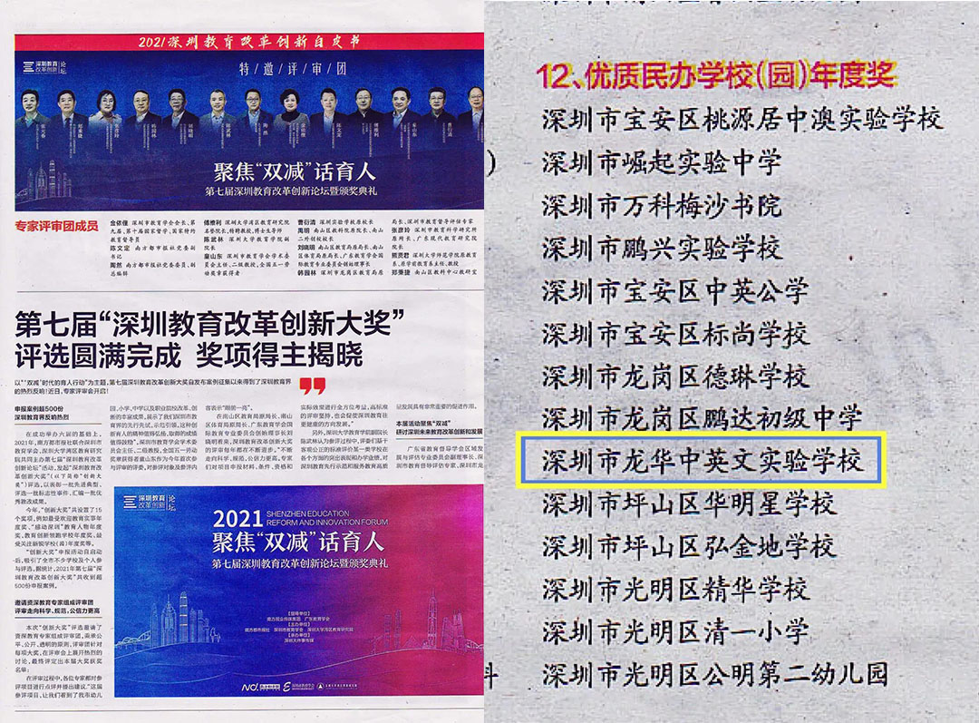 深圳市龍華中英文實(shí)驗(yàn)學(xué)校獲“深圳市優(yōu)質(zhì)民辦學(xué)校年度獎(jiǎng)”,并獲《南方都市報(bào)》專版報(bào)道