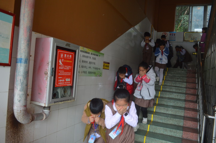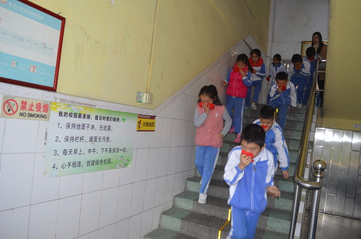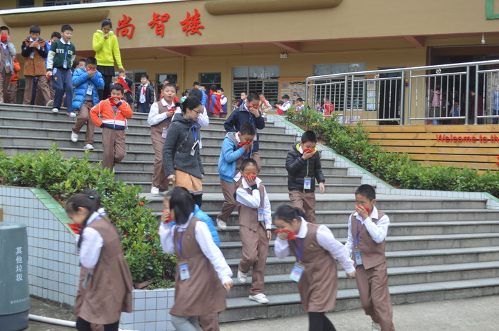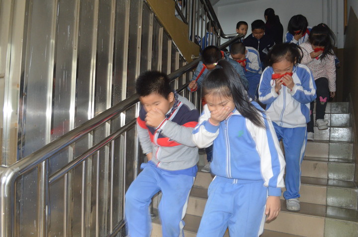 只見各樓梯口疏導人員、班主任到達指定崗位組織學生,捂著口鼻、彎著身子、緊貼墻壁,按指定的路線緊張有序地逃離了“火災現(xiàn)場”,到達安全場地集合,全體師生的撤離僅用了2分30秒。撤離結束后,經(jīng)過清點,52個班級的2500余名學生安全撤離到教學樓前的足球場、籃球場,疏散演練取得了圓滿成功。整個疏散演練過程迅速、安全、鎮(zhèn)靜,組織紀律嚴密,秩序有條不紊。