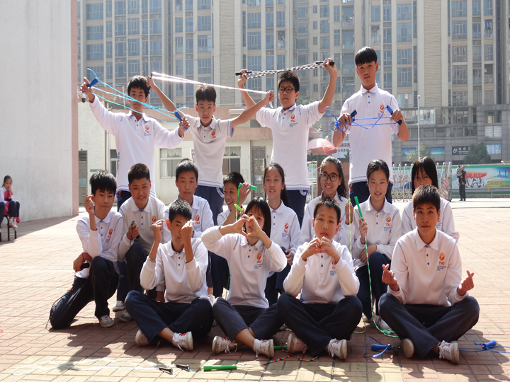 在比賽結(jié)束后,初中部的花樣跳繩隊也進行了表演。那一樣樣精彩的表演完全震驚了在場的每一位師生。所有師生口中不由得發(fā)出:“好棒!”的感嘆聲。