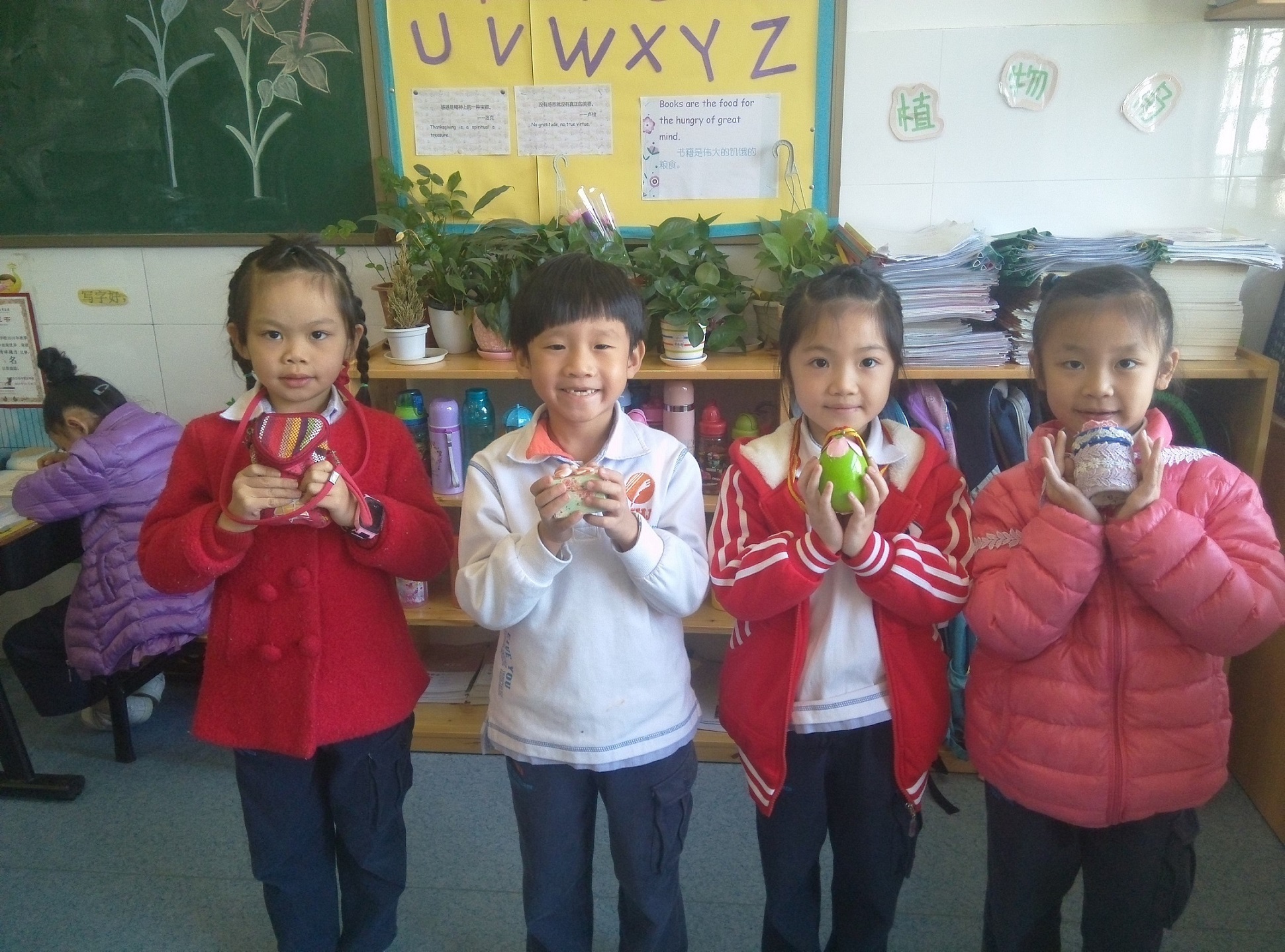 伴隨著“我的父母最偉大”主題德育活動的開展,公明中英文學校一二年級的小朋友們開展了為期一周的護蛋活動,他們周末將雞蛋裝扮成自己喜歡的圖案,并為蛋寶寶取上了好聽的名字,然后就裝進了不同的“房子里”,帶到學校來,孩子們無論課間還是吃飯,都將蛋寶寶隨身帶著,悉心照料,生怕它受到一點點傷害。