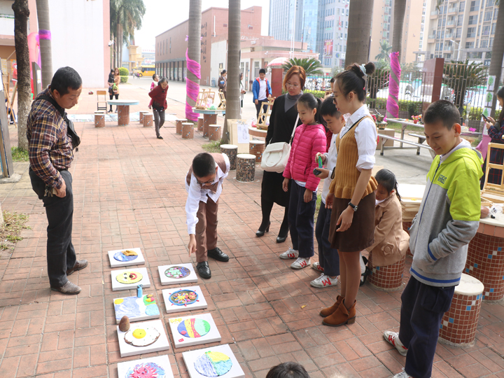 本次展示,第一大特點是采用分年段交叉展示(一二年級為一學段,三至七年級為一學段),雖忙碌,但大家樂在其中。