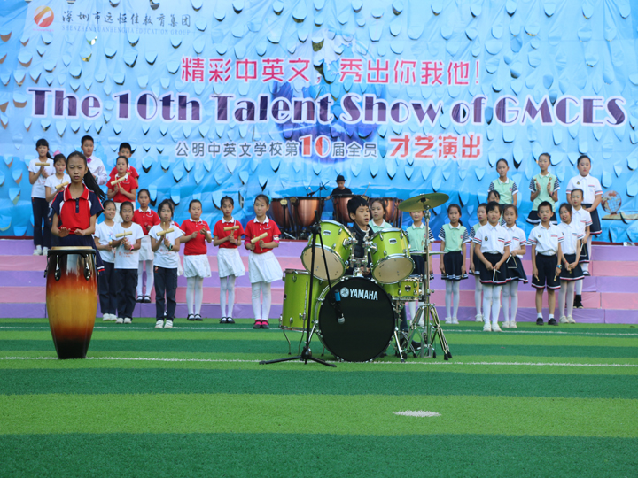 35個小主持人全場用英語主持,打擊樂、古箏、小提琴、葫蘆絲等樂器輪番演奏,拉丁舞、爵士舞、現(xiàn)代舞等爭相斗艷,京劇念白、英語課本劇等各領(lǐng)風(fēng)騒,公明中英文學(xué)校第10屆素質(zhì)教育全員展示驚艷亮相,恢宏的場面、精彩的演出讓在場的師生家長賺足了眼球。
