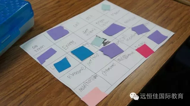 每記住一個(gè)單詞就可以把詞蓋住,最先連成五個(gè)的同學(xué)就獲勝,并獲得老師的小獎(jiǎng)品