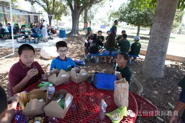 學(xué)校上課注重學(xué)術(shù)的同時(shí),也十分注重學(xué)生們體育的素養(yǎng)和體能的培養(yǎng),午間的美國(guó)學(xué)校沒有午休時(shí)間,午飯休息后,便開始了體育活動(dòng)時(shí)間。在這里,同學(xué)們充分的享受加州的陽光。