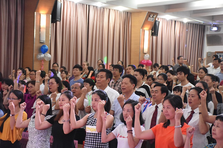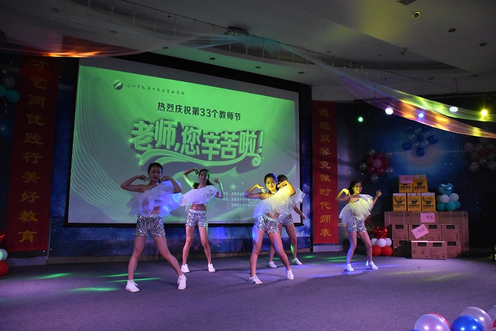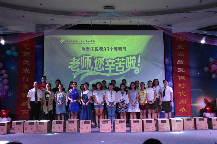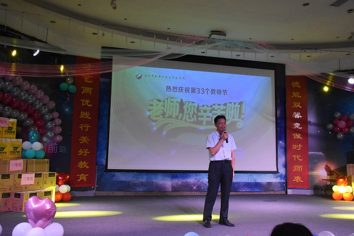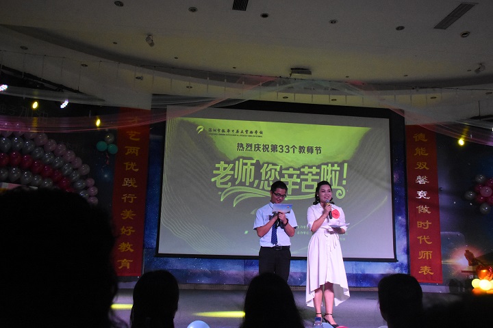 2017年9月8號,深圳市遠(yuǎn)恒佳國際教育城攜手龍華中英文實(shí)驗(yàn)學(xué)校舉辦了慶祝第33個(gè)教師節(jié)活動(dòng),于當(dāng)日晚上19:00正式在龍華校多功能廳舉行,由胡化忠老師及祝啟鳳老師擔(dān)任主持。整場晚會(huì)由教育城部分老師以唯美、俏皮、激烈的開場舞拉開帷幕,隨后龍華校情歌王子歐陽新建老師用優(yōu)美、動(dòng)聽的歌喉將現(xiàn)場聽眾帶入了纏綿悱惻的愛情故事中,抽獎(jiǎng)環(huán)節(jié)將現(xiàn)場的活動(dòng)氣氛帶入到了最高潮,抽獎(jiǎng)過程中吶喊聲此起彼伏,每次抽獎(jiǎng)都激動(dòng)人心。各個(gè)行政領(lǐng)導(dǎo)班子不甘示弱,以《我們是遠(yuǎn)恒佳人,我們共建美好教育》將整場晚會(huì)的文化氣韻提升到最高境界,同時(shí)表達(dá)了“珍惜相伴之緣,揮灑一路有愛;醉心美好教育之夢,追尋幸福永遠(yuǎn)”的美好愿景。學(xué)校校辦領(lǐng)導(dǎo)兼主持人的祝啟鳳老師為全體教師進(jìn)行了一場《生命列車》的游戲互動(dòng),正?;?dòng)環(huán)節(jié)得到了集團(tuán)教育研究院副院長畢國軍博士的大力點(diǎn)贊。最后在學(xué)校小朋友的帶領(lǐng)下,全體師生演唱、表演集團(tuán)之歌《相伴同行》為晚會(huì)拉下序幕!