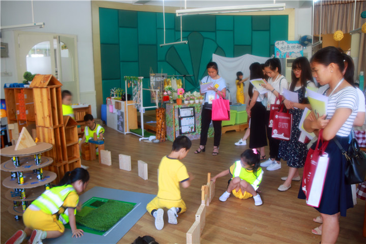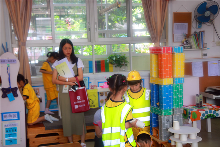 深圳市龍華中英文實(shí)驗(yàn)學(xué)校幼兒園在此次跟崗全園同時(shí)開放,跟崗成員在跟崗之前組成三大組分別進(jìn)入小、中、大班的建構(gòu)區(qū)進(jìn)行觀摩、學(xué)習(xí)。在觀摩中間接引發(fā)思考,帶著問題組內(nèi)討論,組與組之間交流,發(fā)表自己的想法與觀點(diǎn),直接獲取經(jīng)驗(yàn)!