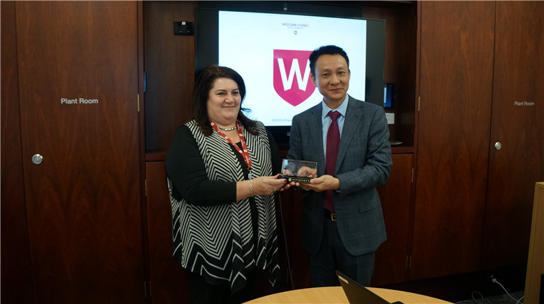 (西悉尼大學)宋遠標董事長向校方代表贈送禮物