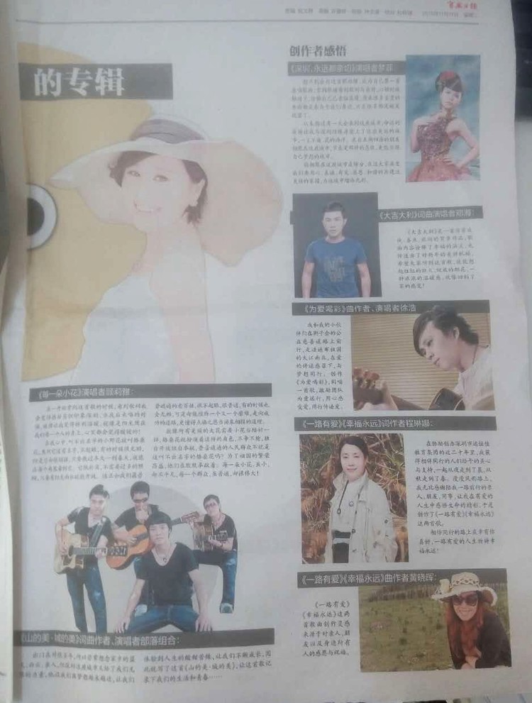 2015年11月17日《寶安日報》B7版新聞報道《唱響寶安--寶安人自己的專輯》創(chuàng)作者感悟