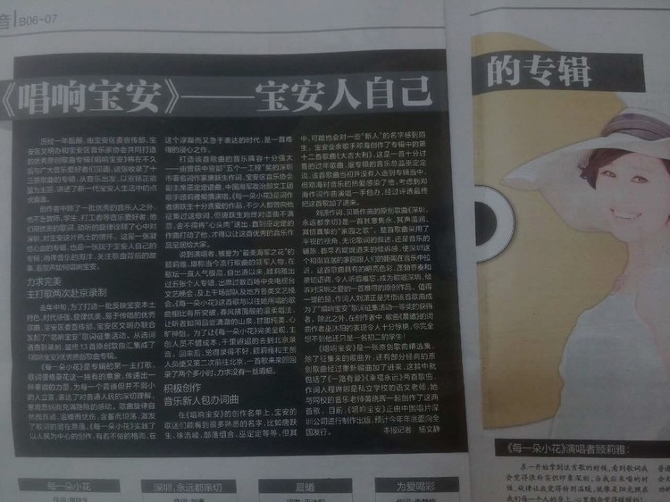 2015年11月17日《寶安日報》B6版新聞報道《唱響寶安--寶安人自己的專輯》