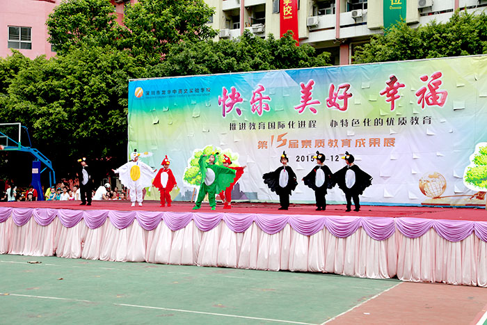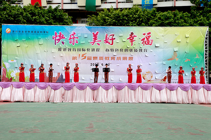以“快樂、美好、幸福”為主題的龍華中英文實驗學(xué)校第十五屆素質(zhì)教育成果展示活動,于2015年6月12日下午在龍華中英文實驗學(xué)校運動場成功舉辦,在全體演職人員的辛勤努力下,展示活動圓滿成功、精彩紛呈,再次彰顯了學(xué)校學(xué)生“習(xí)慣好、能力強、成績優(yōu)”的素質(zhì)教育特色。