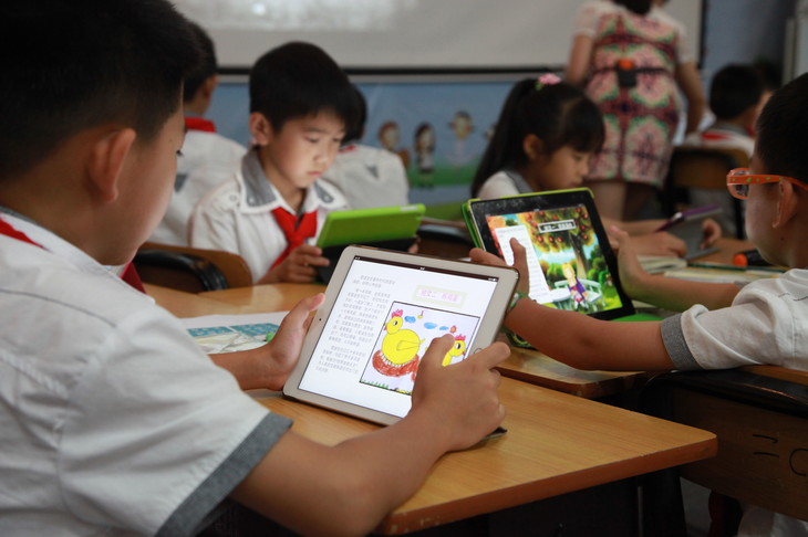 學(xué)生們正在用IPad進(jìn)行課堂拓展閱讀